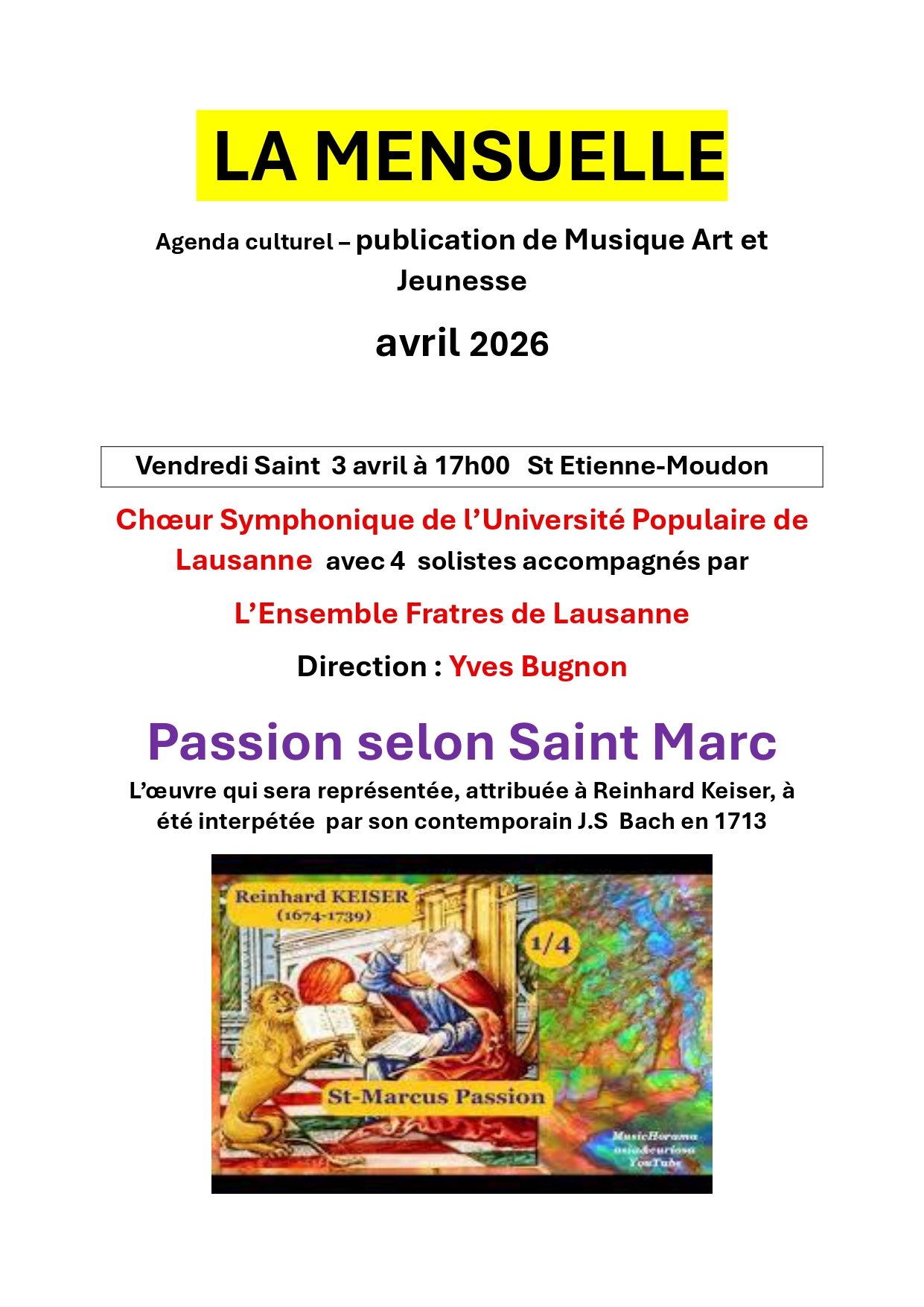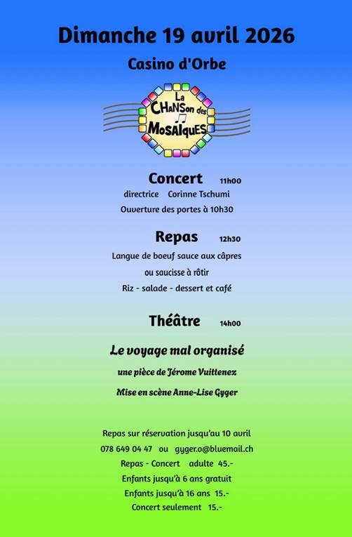 Vous souhaiter participer à un atelier à Peseux. Choeur et fanfare avec un répertoire très varié. Les informations sont sur les flyer suivants.